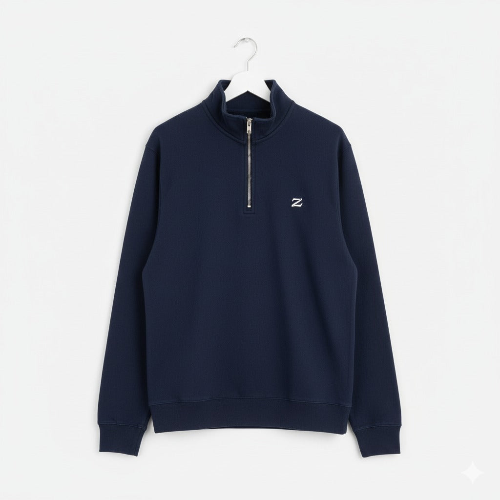 1: : Premium Navy blue 1/4 Zip Sweatshirt | Casual Embroidered 'Z' Logo Pullover
