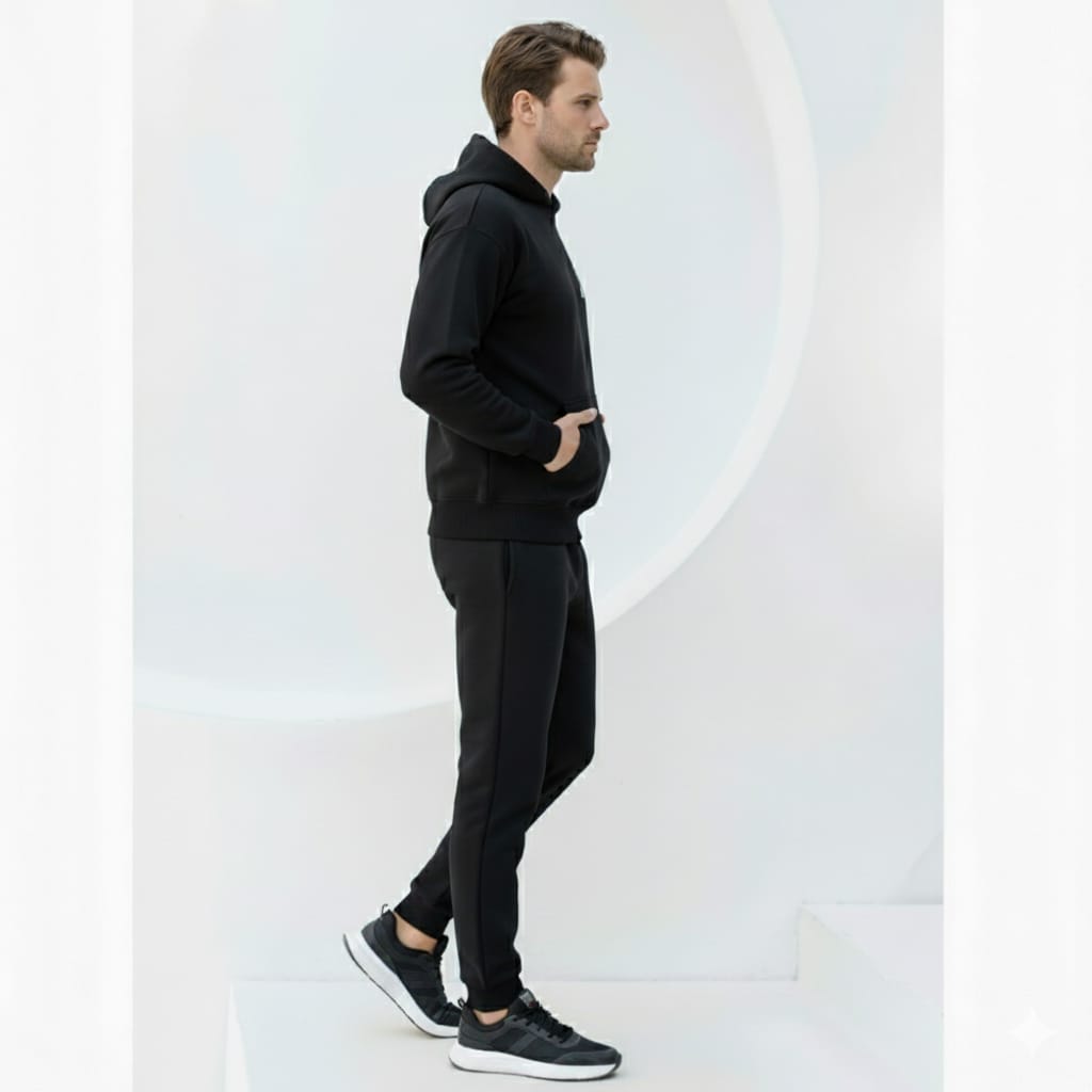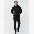 Ultimate Comfort: Men's Black Fleece Hoodie and Jogger Tracksuit Set